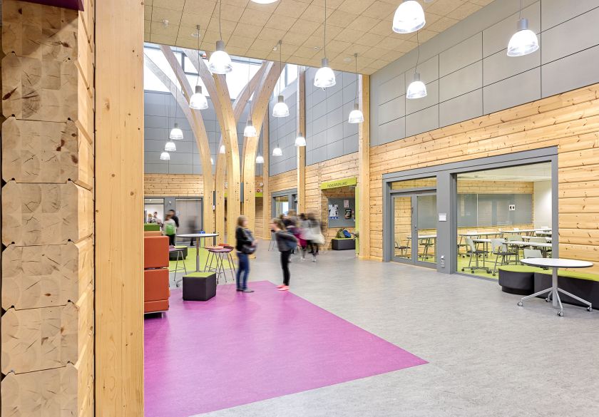 „Patys medieną naudojame labai įvairiais būdais. Paprasčiausia forma – stogo konstrukcijose ar fasaduose. Tačiau turime ir tikrai išskirtinių pavyzdžių, kai viso pastato karkasui panaudojame medieną. Tai rodo neseniai įgyvendinti edukacinės paskirties projektai. Mūsų bendrovė Pietų Suomijos provincijoje Imatroje pastatė didžiausią medinę mokyklą šalyje. Taip pat – bene didžiausią pasaulyje mokyklą iš rąstų Pudasjärvi. Daugeliu atvejų, medienos nori užsakovai, taip siekdami teigiamai išsiskirti iš kitų savivaldybių bei miestų“, – akcentuoja Suomijos bendrovės „YIT“ atstovas.
